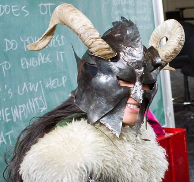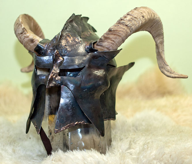 Made from 16 ga steel and real ram's horns, this thing screams RAWR! This was made before Skyrim came out, it is NOT the Skyrim helmet pls stop yelling at me randomly when I walk around with this on