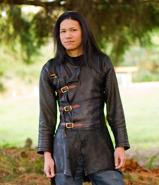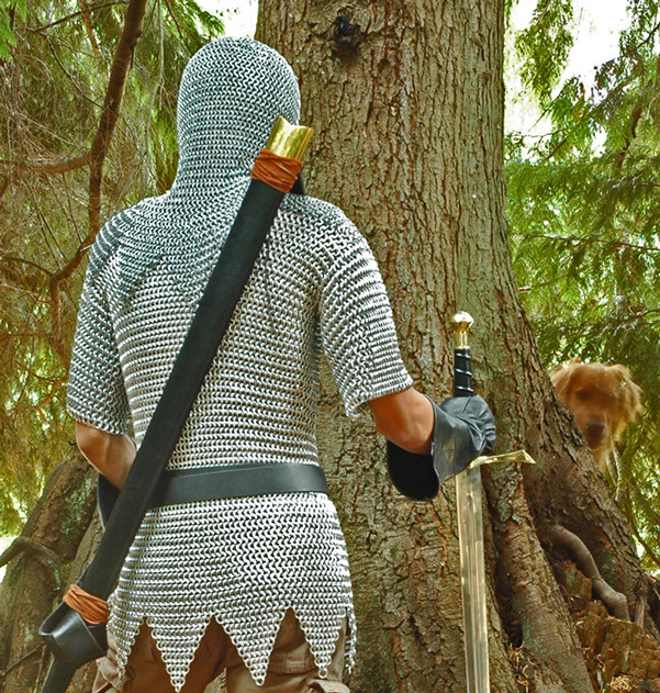 The first armor I ever made was a chainmail coif, then came a hauberk, then various leather things like the greaves, pants, etc.