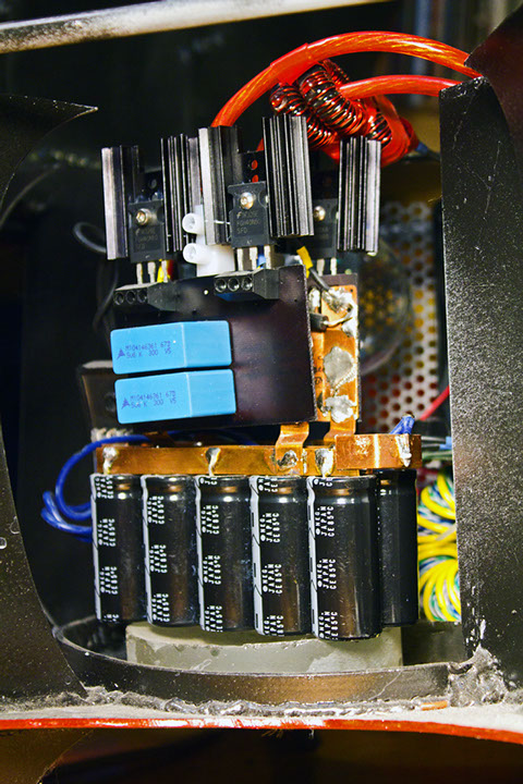 This is a Tesla coil, a dual resonant solid state Tesla coil.